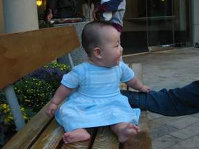 电梯由于火警关闭了,28层的高楼,让我们打消了走上去的念头,只好乖乖的在外面的花园等着。好在我们的小宝宝还是有很多动作,虽然等了将近一个小时,在给小宝宝拍照的过程中也觉得过得飞快。同时等在外面的还有许多等待开party的印度人,他们也饶有兴趣一起欣赏小宝宝的表演。