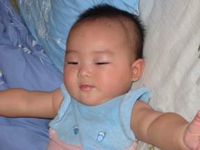 宝宝从出生没多久,躺在床上,两个小胳膊就总这样一摇一晃的,象拿着竹竿走钢丝的小运动员。小宝宝开始可还不知道这样的动作原来就是后来的要抱抱的意思,看来宝宝很有预见性,从那么小就开始练习了。