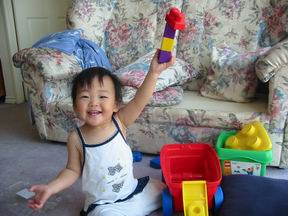 看,才把4快积木搭起来,就表现的跟得了奥斯卡奖似的。如此容易骄傲,家长教育的失败啊! :((
