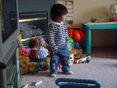 小Andrea在给大家表演模特的猫步。高难度动作啊!