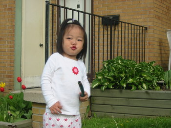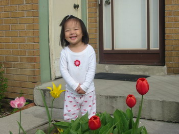 隔壁邻居的花坛,很漂亮的郁金香。不过可经不起丫丫的摧花手,随手一拨拉,一朵花眨眼就秃了。弄的我心惊肉跳的总怕丫丫动手动脚。