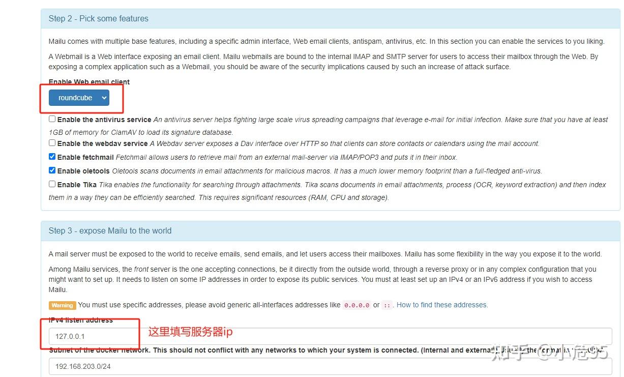 mailu 提供了一个网页来辅助生成配置,访问 https://setup.mailu.io/ 需要开放的端口如下